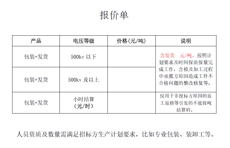 4、如因投標方特殊情況,經與人力資源部溝通后,可郵寄或送達至接收地址:梁鳳娟18100377087山東省膠州市鋪集鎮鞏家莊對面,青島匯金通電力設備股份有限公司(郵寄時務必備注好貴公司名稱+報價項目名稱,投標相關資料必須確保密封、完好無損)